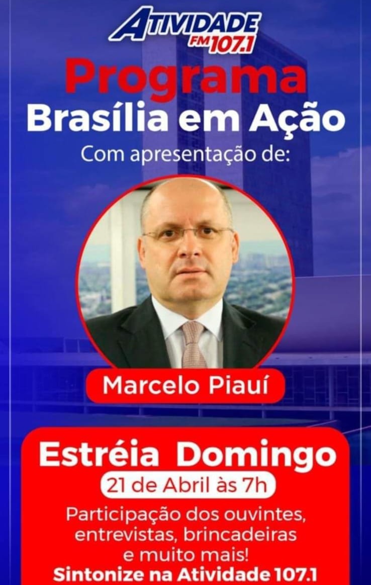 A rádio Atividade FM anuncia uma nova adição à sua programação com a estreia do programa "Brasília em Ação", que promete agitar as manhãs de domingo na capital. A partir das 7h do dia 21 de abril, os ouvintes já podem sintonizar na frequência 107.1 FM para conferir a primeira transmissão do programa que será apresentado por Marcelo Piauí